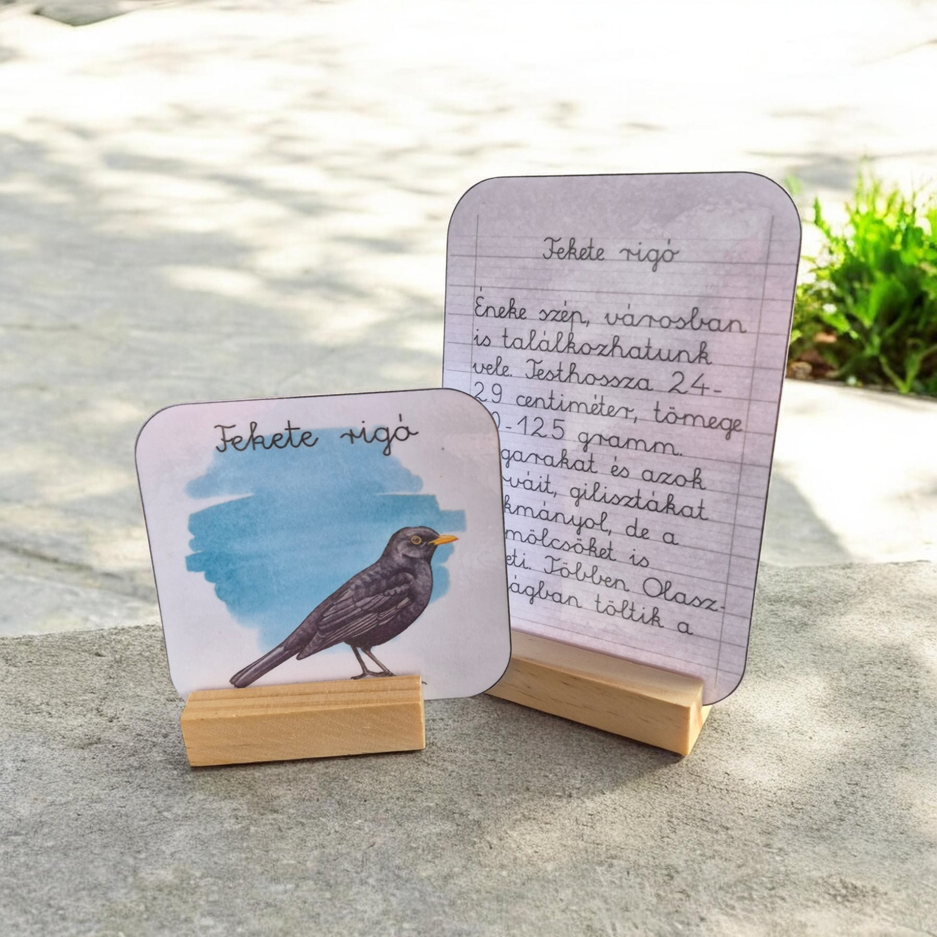 Minden kártyán egy madár illusztrációja, neve és rövid jellemzése található, amely segíti az ismeretszerzést és a természethez való kapcsolódást.