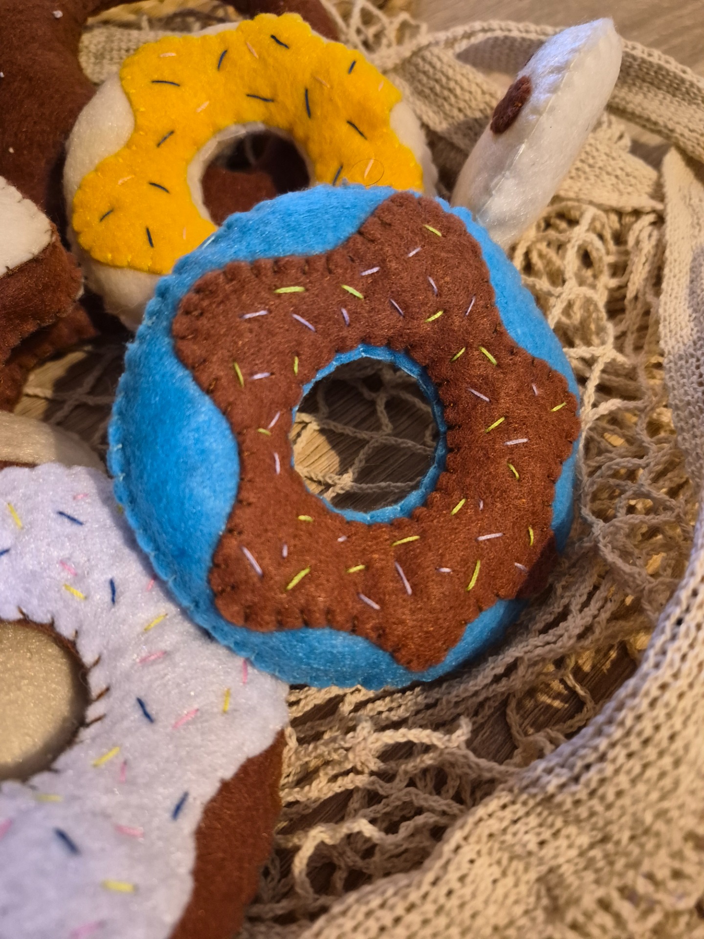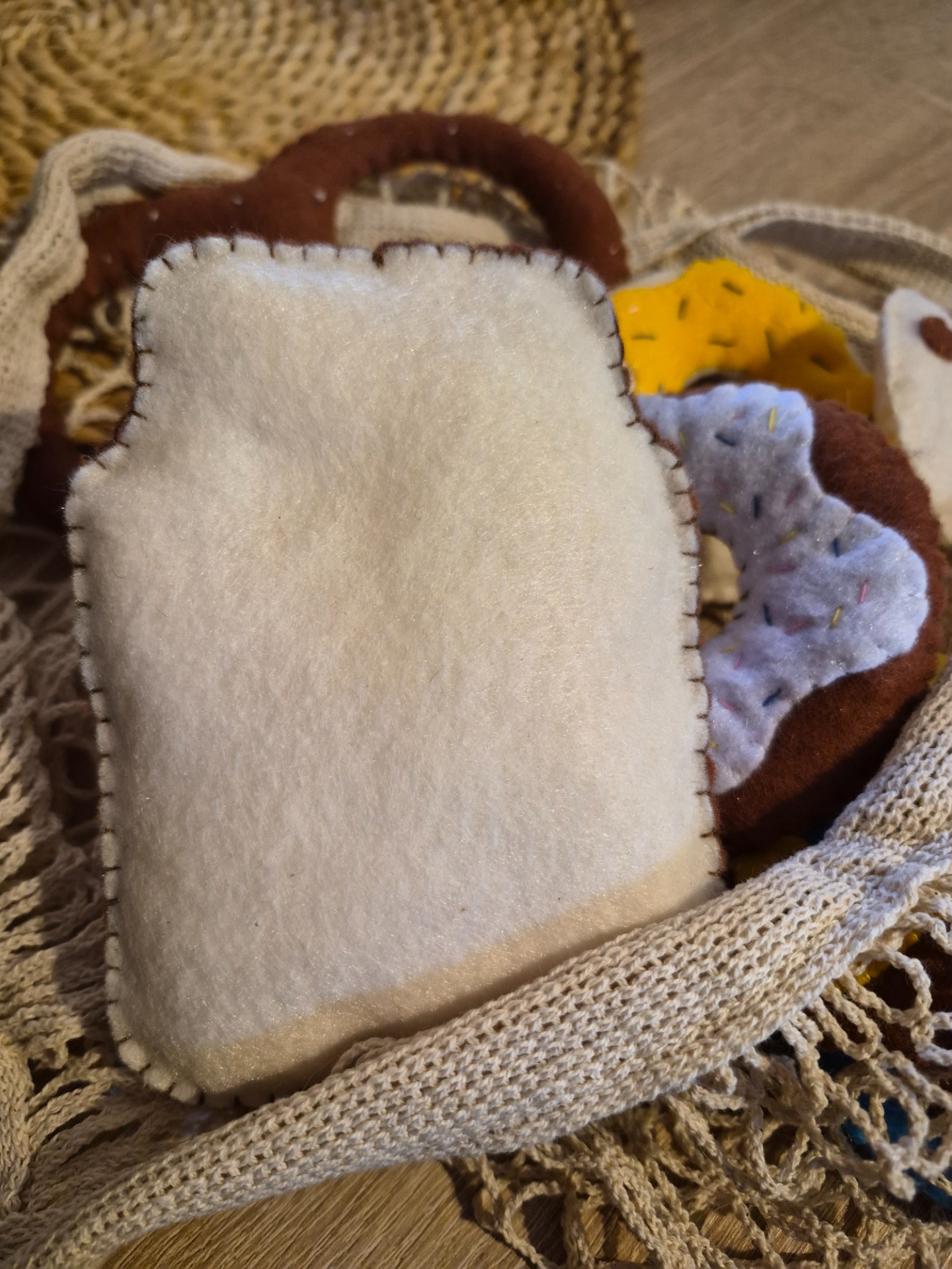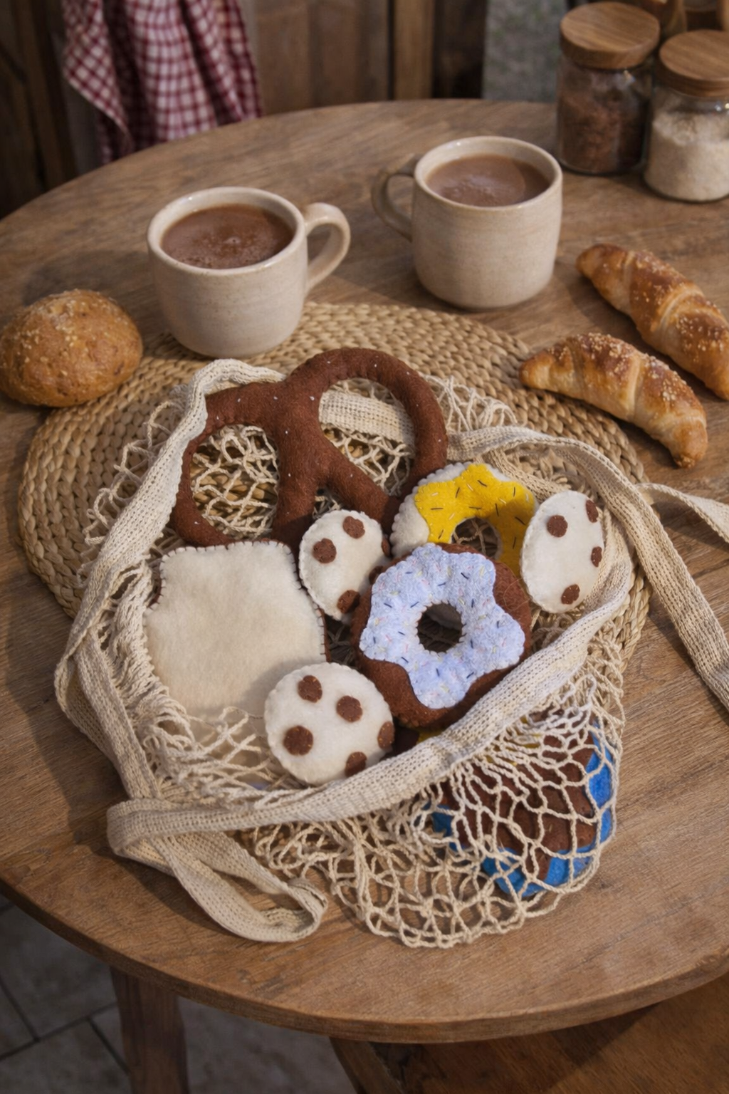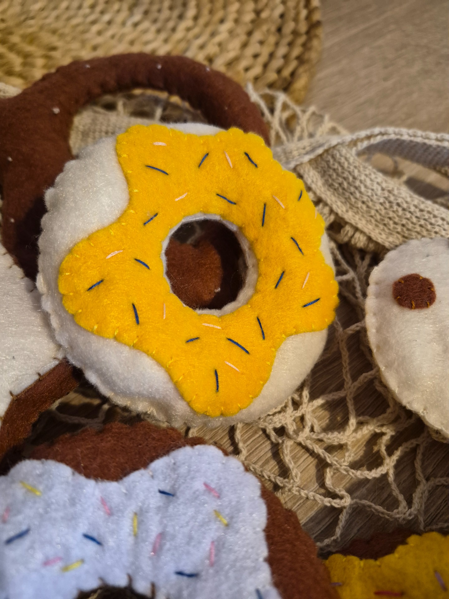 Kézzel varrt, puha filc „péksütemények”, amelyek tökéletes kiegészítői a játékkonyhának. A kis séfek örömmel készítenek velük reggelit, uzsonnát, vagy akár egy egész „pékséget” is nyithatnak otthon.